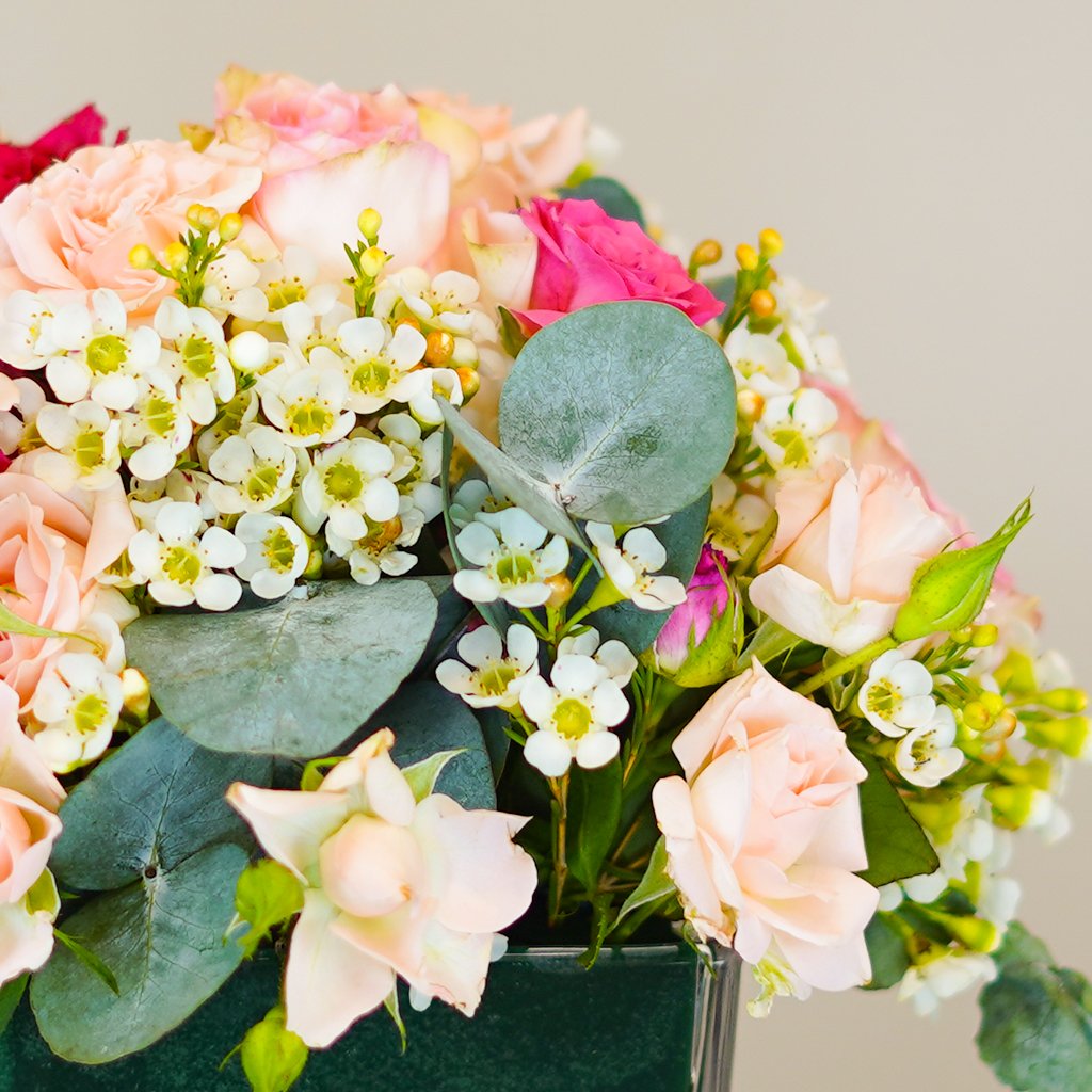 •  Beautifully Arranged in a Glass Square Vase